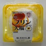 【プリン大福(みたらし入り)】みたらしとカスタード風味のなめらかなクリームをお餅で包んだプリンのような大福です。みたらしの甘じょっぱさとクリームのクリーミーさが癖になる味わいです。