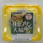 【抹茶プリン大福(みたらし入り)】みたらしとカスタード風味のなめらかなクリームを抹茶入りのお餅で包んだ大福です。三つの味わいを一度にお楽しみください。