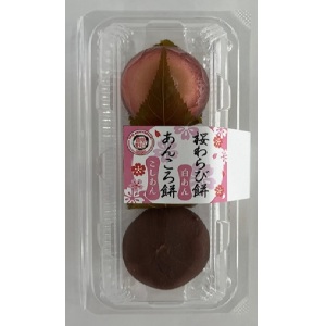 【桜わらび餅・あんころ餅】上品な甘さの白あんを桜色に染めたわらび餅で包みました。あんころ餅とセットでご賞味ください。