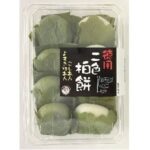 【抹茶合わせ餅(こしあん)】やさしい甘みのあるこしあんを香り豊かな抹茶入りのお餅で挟みました。抹茶のほろ苦さとこしあんの甘みのバランスが絶妙です。
