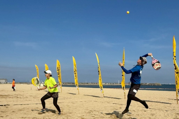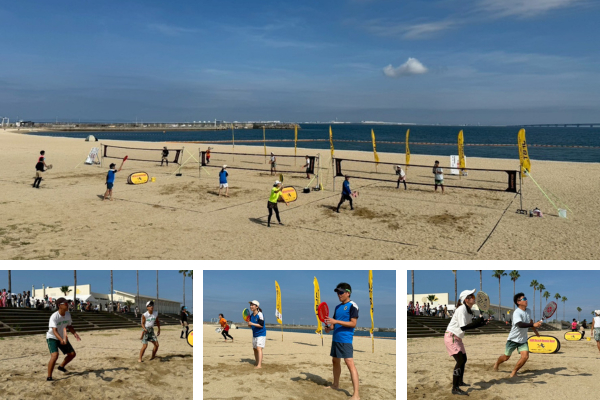 ビーチテニスは、競技名の通り、砂浜のコートにてノーバウンドでボールを打ち合い、敵陣にボールを落とせば得点できます。大会によって、1セットマッチ、3セットマッチ、8ゲームマッチなどがありますが、本大会は1セットマッチ、男女がペアを組むミックスダブルスの形式でした。
