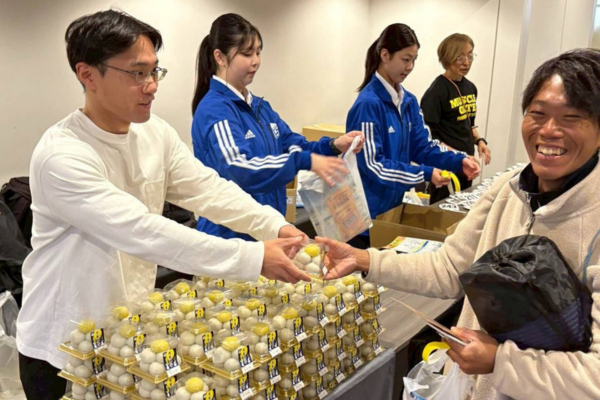 明日香野がお届けした月見団子は大変好評で「今までで一番うれしい差し入れだった」との嬉しいお声もいただきました。偶然にも大会当日の11月2日は「十三夜」。和菓子を食べる甘いひとときに、お月見の風情を添えられました。