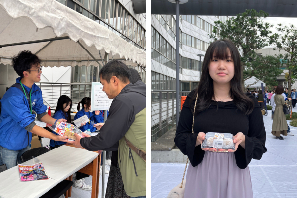 『「ちょっと食べる」喜びを毎日世界へ』をミッションに、50年間和菓子をお届けし続けている明日香野が、東洋大学の大学祭「第61回 白山祭」(11/2~3・同大学白山キャンパス)に参加。学生と地域をつなぐ大学祭の盛り上げを後押しする「応援団」として、学生や地域の方々に和菓子をお渡しして、ちょっと食べる喜びをお届けしました。