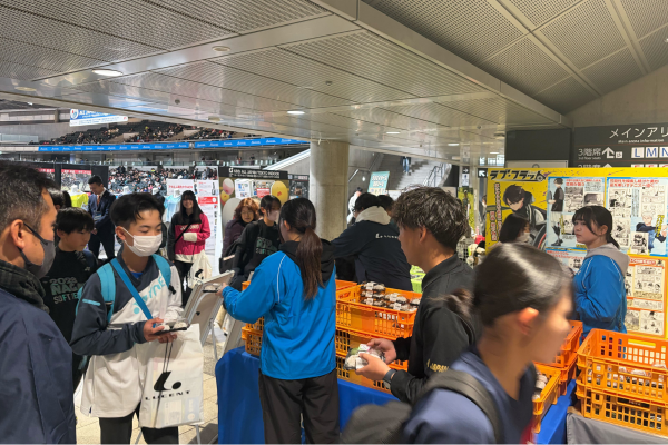 大会が終わって熱戦の余韻に浸り、帰路につく来場者の皆さまに、明日香野は「ちょっと大きめごまとくるみの大福」「THE草餅・道明寺」をお配りしました。手に汗握る激闘が続き、応援にも力が入り、カロリー消費が激しかった今大会。ほどよい甘さの和菓子は糖分補給にもぴったりでした。