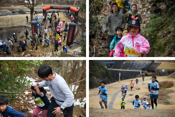 交野市の豊かな里山を舞台に「山のお祭り」をコンセプトにした大会です。メイン種目となるビッグロックトレイル部門は23km、累積標高1,380mで、592名が参加。3人1組のトリオ部門、キッズによるミニロックトレイル部門も行われました。