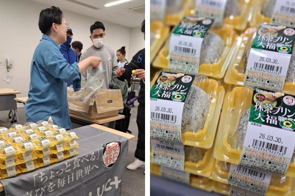 明日香野は、この日に向けて体を絞ってきた選手の皆さまに「抹茶プリン大福」をお届け。ハードな減量やトレーニングから解放された選手に「ちょっと食べる」喜びを味わっていただきました。