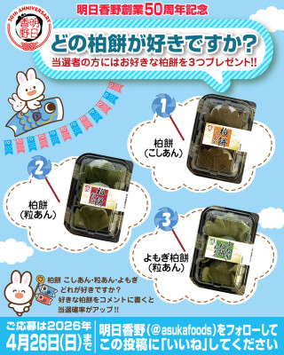 このたび、西日本エリアで販売する「柏餅」が子どもの日に合わせてもらえるキャンペーン「どの柏餅が好きですか?」を開始しました。キャンペーンの開催期間は2026年4月20日から4月26日までとなります。