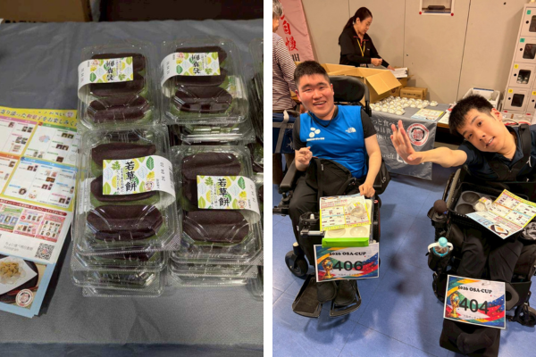 明日香野は「若草餅」「プチ白あんこ餅」を選手やスタッフにお届け。試合の合間やリカバリー時間に、選手たちが和菓子を手に取っていました。口当たりの柔らかさとエネルギー補給のしやすさは、重度障がいのある選手にとっても特にありがたい存在となり、「食べやすい」「ちょうどいい甘さで力が戻る」などの声が多く聞かれました。長時間にわたり運営を支えるスタッフにとって「ほっと一息つけるひと口」にもなりました。